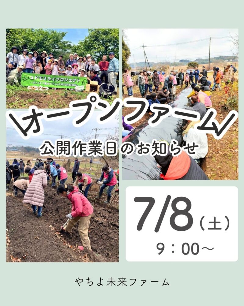 やちよ未来ファームは無農薬、無化学肥料で野菜とバラを栽培しています。 また、菌ちゃん先生の農法での野菜作りも始めています。 オープンファームDAYは農場を開放して一緒に作業したり、草刈りしたり、収穫したり、地域の皆様と交流する日。 菌ちゃん農... News
